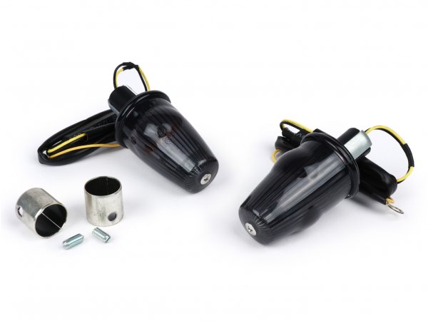 Blinker Nachrüst-Set für Lenkerendenblinker -MOTO NOSTRA, LED , mit E-Kennzeichnung, 12 Volt- Vespa Smallframe PK S/XL/XL2/HP, Largeframe PX, T5, LML - Ø=24mm - Schwarz