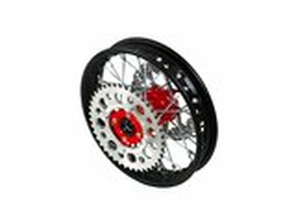 Hinterrad - CNC Nabe rot m. Bremsscheibe + Kettenrad Pit Bike YCF50A
