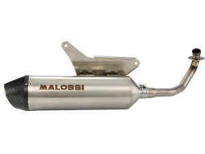 Rennauspuff MALOSSI RX, für APRILIA Scarabeo Special 300 4T, LC, i.e. silber, Dämpfer: Edelstahl, mit E-Norm, mit Carbon Endkappe