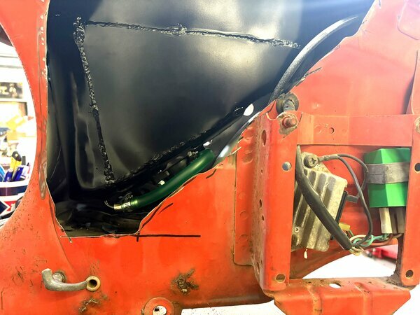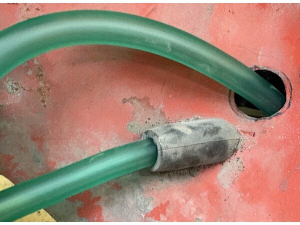Um den Tank in den Rahmen einsetzen zu können muss die Chokebefestigung (Führungsröhrchen am Rahmen innen) abgetrennt werden.